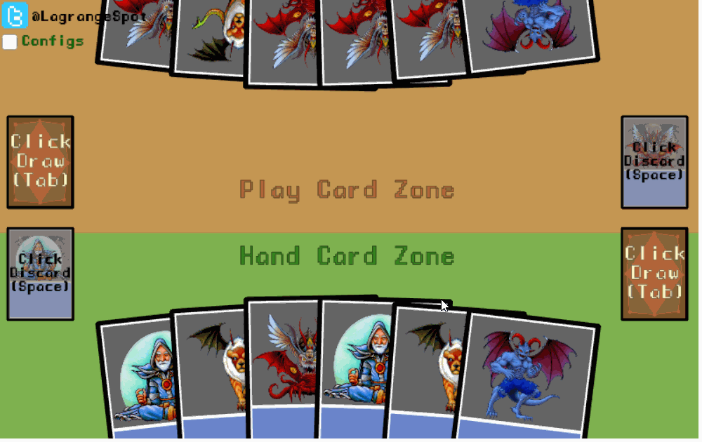 - Play/Discard cards dropping onto the "Play Card Zone" (orange area);