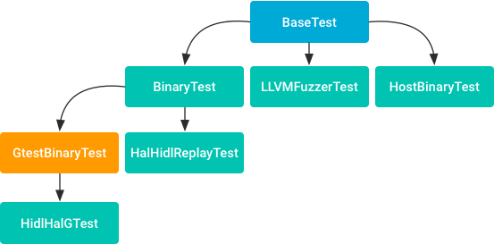 Use the BinaryTest template to integrate tests that execute on target device in VTS. Target-side tests include: