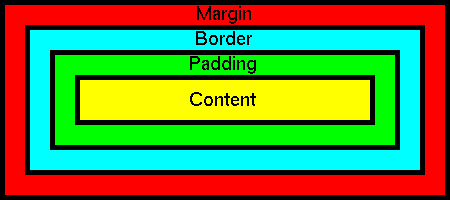The content of a box is at the center of the box. Around the content is an area called the padding, which is the space between the content and the border. The border is around the padding. And around the border is the margin, which is the space between the box and other boxes around it. Figure 1 should illustrate this pretty clearly.