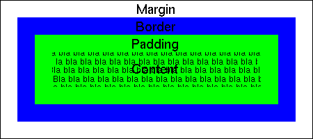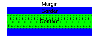 The background of a box is shown behind the content and the padding only. The margins are always transparent. So, a box with a green background and a blue border would be displayed as shown in Figure 2.