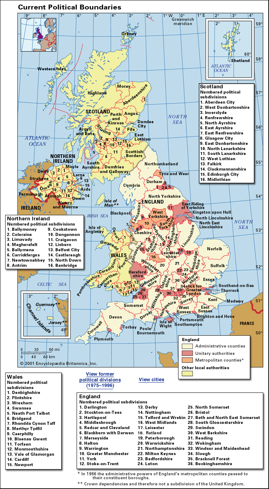The origins of the United Kingdom can be traced to the time of the Anglo-Saxon king Athelstan, who in the early 10th century ce secured the allegiance of neighbouring Celtic kingdoms and became “the first to rule what previously many kings shared between them,” in the words of a contemporary chronicle. Through subsequent conquest over the following centuries, kingdoms lying farther afield came under English dominion. Wales, a congeries of Celtic kingdoms lying in Great Britain’s southwest, was formally united with England by the Acts of Union of 1536 and 1542. Scotland, ruled from London since 1603, formally was joined with England and Wales in 1707 to form the United Kingdom of Great Britain. (The adjective “British” came into use at this time to refer to all the kingdom’s peoples.) Ireland came under English control during the 1600s and was formally united with Great Britain through the Act of Union of 1800. The republic of Ireland gained its independence in 1922, but six of Ulster’s nine counties remained part of the United Kingdom as Northern Ireland. Relations between these constituent states and England have been marked by controversy and, at times, open rebellion and even warfare. These tensions relaxed somewhat during the late 20th century, when devolved assemblies were introduced in Northern Ireland, Scotland, and Wales. Nonetheless, even with the establishment of a power-sharing assembly after referenda in both Northern Ireland and the Irish republic, relations between Northern Ireland’s unionists (who favour continued British sovereignty over Northern Ireland) and nationalists (who favour unification with the republic of Ireland) remained tense into the 21st century.