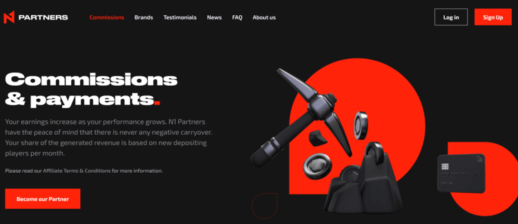N1 Partners is a multi-brand iGaming and betting affiliate program. The program offers affiliates access to a diverse range of gaming options, including slots, table games, live dealer experiences, and sports betting.