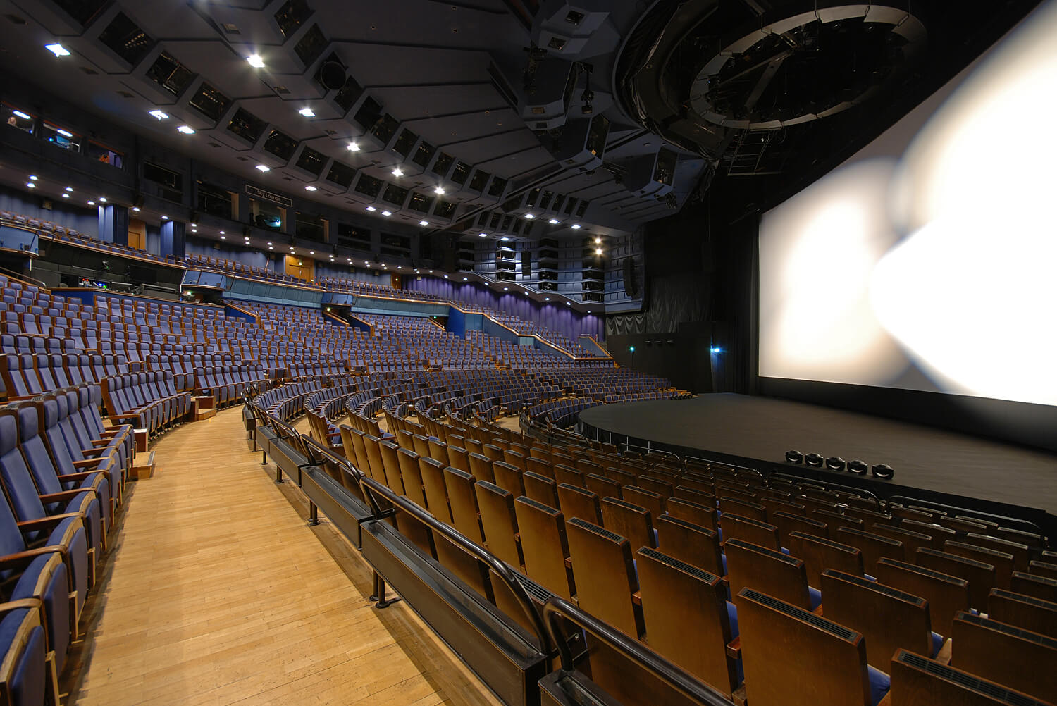 allerdings für jeden Durschnittsgroßen eine echte Qual. Die besten Reihen sind somit die, die einen Gang vor sich haben. Davon gibt es nicht viele. Da die Leinwand relativ weit auf der Bühne rückgesetzt war, musste man sich vor den vorderen Reihen nicht scheuen. Die Klappsessel selber sind leider hart und recht unbequem schmal. |