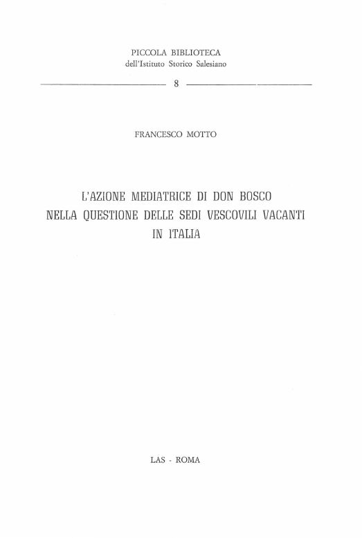 Francesco Motto – L’azione mediatrice di Don Bosco nella questione delle sedi vescovili vacanti in Italia