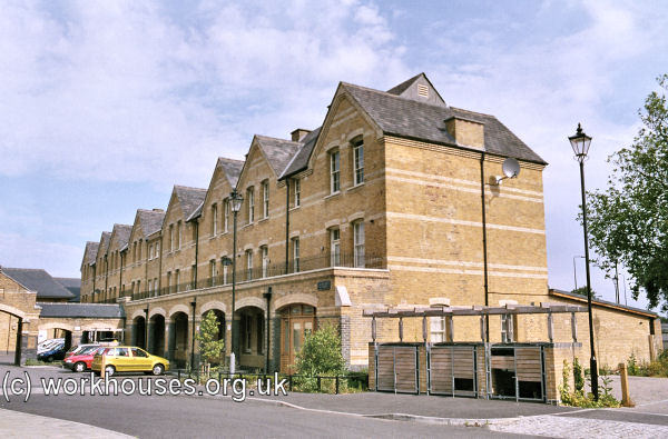 Initially, the new parish continued using the Hare Street workhouse. However, chronic overcrowding of the building eventually forced the Guardians to provided new premises. A new workhouse, designed by Mr Bunning, was erected at a site at Bonner's Hall Fields to the west of the Waterloo Road (now Waterloo Gardens). It came into operation in August 1842 and could accommodate 1016 inmates. The buildings, three storeys high and built of brick, comprised a long corridor-plan main block running north-south, with two irregular wings. An infirmary was located in the north-east wing and a stone yard at the north-west corner of the site. More detail was provided in a comtemporary description of the premises:
