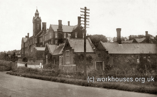 The buildings, for 250 inmates, were designed by Frederick Peck who was also the architect of Union workhouses at East Grinstead and Chatham. It cost £12,000 and was constructed of red brick by local builder Henry Norris. The three-storey Jacobean-style building had mullioned windows, gables, and a central clock tower.