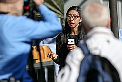 - ^ 中央电视台在华盛顿、纽约和洛杉矶设立了多个演播室,其中纽约演播室设在时报广场纳斯达克的大楼内,洛杉矶演播室主要采用虚拟技术,北京时间2014年4月12日上午9点启用。